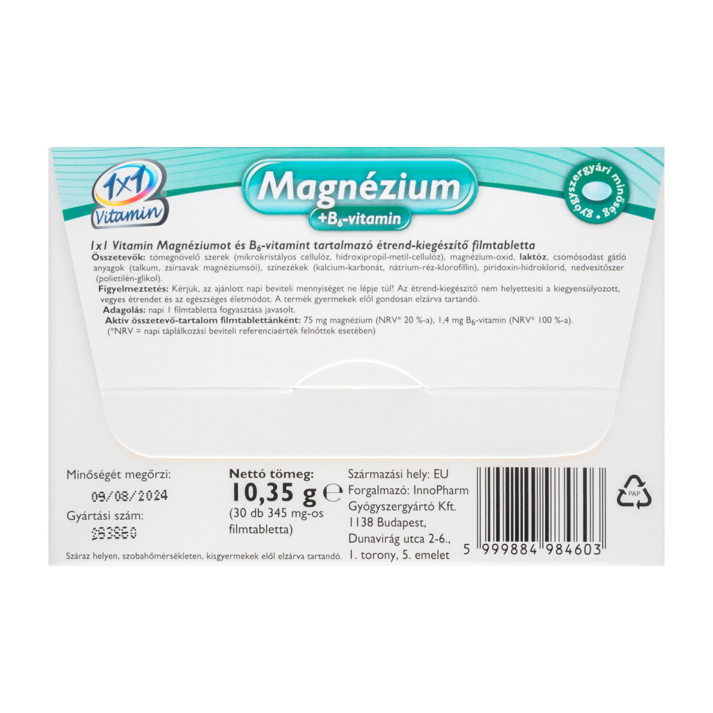 Étrend-kiegészítő filmtabletta praktikus borítékos kiszerelésben. A készítmény magnéziumot és B6-vitamint tartalmaz.