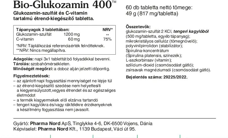 Glükózamin-szulfát C-vitaminnal. A C-vitamin a kollagénképzésen keresztűl hozzájárul a porc normál állapotának fenntartásához.