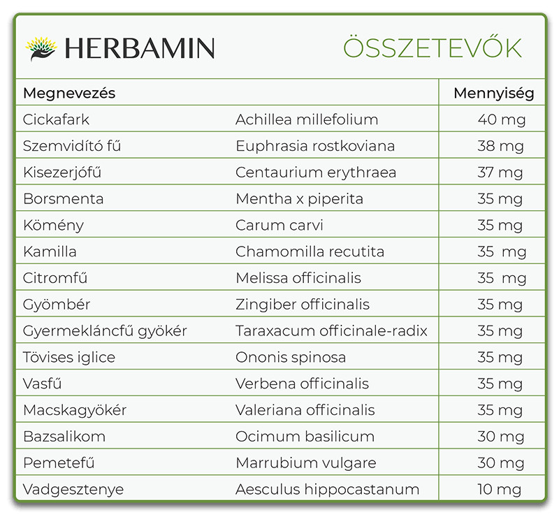 A termékben található gyógynövények hatásai