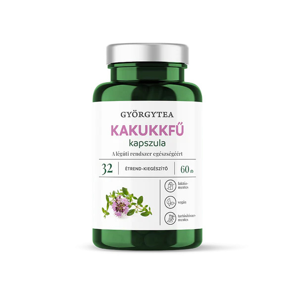 Györgytea Kakukkfű étrend-kiegészítő kapszula a légúti rendszer egészségéért.