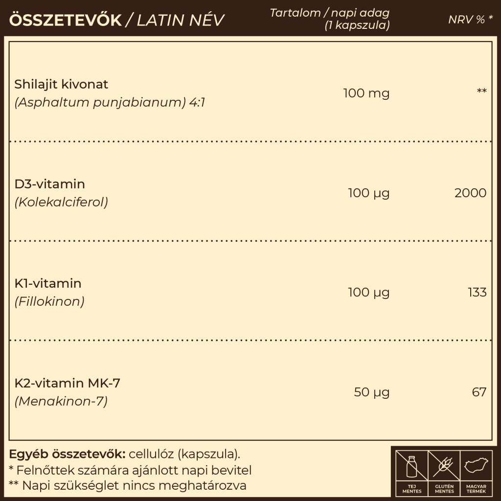 D3 vitamin K1+K2 vitaminokkal és shilajittal.