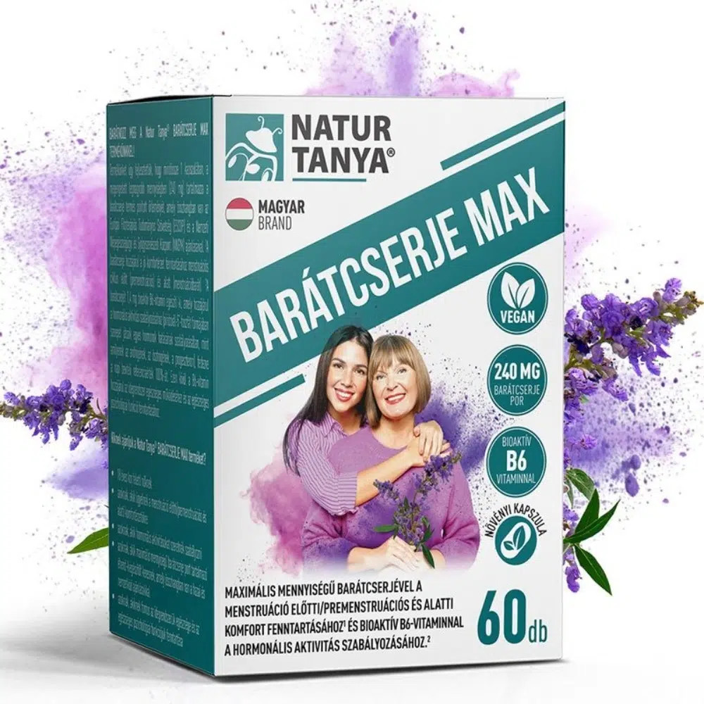 A Natur Tanya Barátcserje Max, maximális mennyiségű barátcserjét tartalmazó táplálékkiegészítő, bioaktív B6-vitaminnal dúsítva.