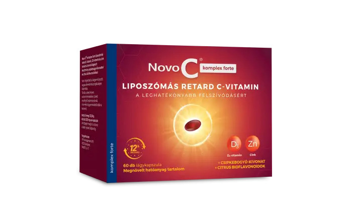 A Novo C komplex forte liposzómás retard C-vitamin, abban különbözik a hagyományos készítményektől, hogy az immunrendszert támogató hármas hatóanyag-kombinációját - a C-vitamint, D3-vitamint és cinket, az innovatív technológiának köszönhetően olyan természetes foszfolipid réteg veszi körül, amely az emberi sejtek membránjait is alkotja. Ez a védőburok lehetővé teszi, hogy a hatóanyagok könnyebben bejussanak a sejtekbe.