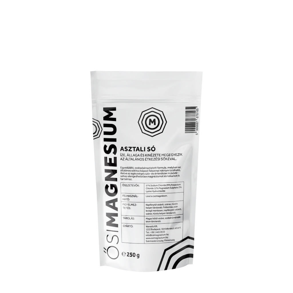 Sokat tehet az egészségtudatos étkezésért és a szervezet magnéziumellátásának támogatásáért, ha magnéziummal és káliummal dúsított, csökkentett nátriumtartalmú Ősi Magnesium asztali sót használ. Ízében és állagában nem tér el a hagyományos konyhasóktól, így könnyen beilleszthető a mindennapi főzésbe. A praktikus, 250 g-os kiszerelés ideális választás lehet azoknak is, akik most ismerkednek a termékcsaláddal, valamint azoknak, akik utazás vagy nyaralás alatt sem szeretnének lemondani a tudatos megoldásokról.