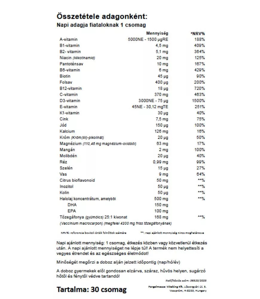 Vitaking 365 Multivitamin Tini csomag 30 napi adag