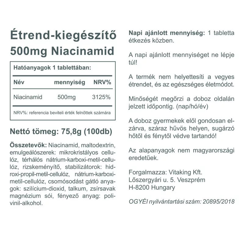 Vitaking B3-vitamin Niacinamid 500 mg 100 db