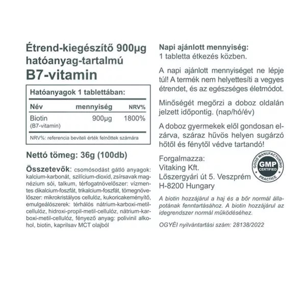 Vitaking B7-vitamin Biotin 900 mcg 100 db