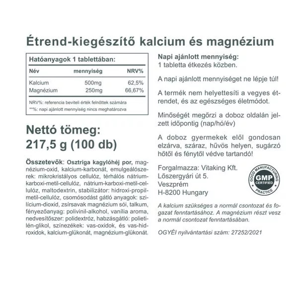 Vitaking Kalcium 500 mg-Magnézium 250 mg tabletta 100 db