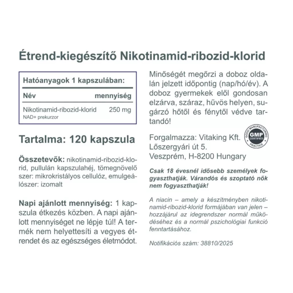 Vitaking NAD+ 250 mg – nikotinamid-ribozid-klorid