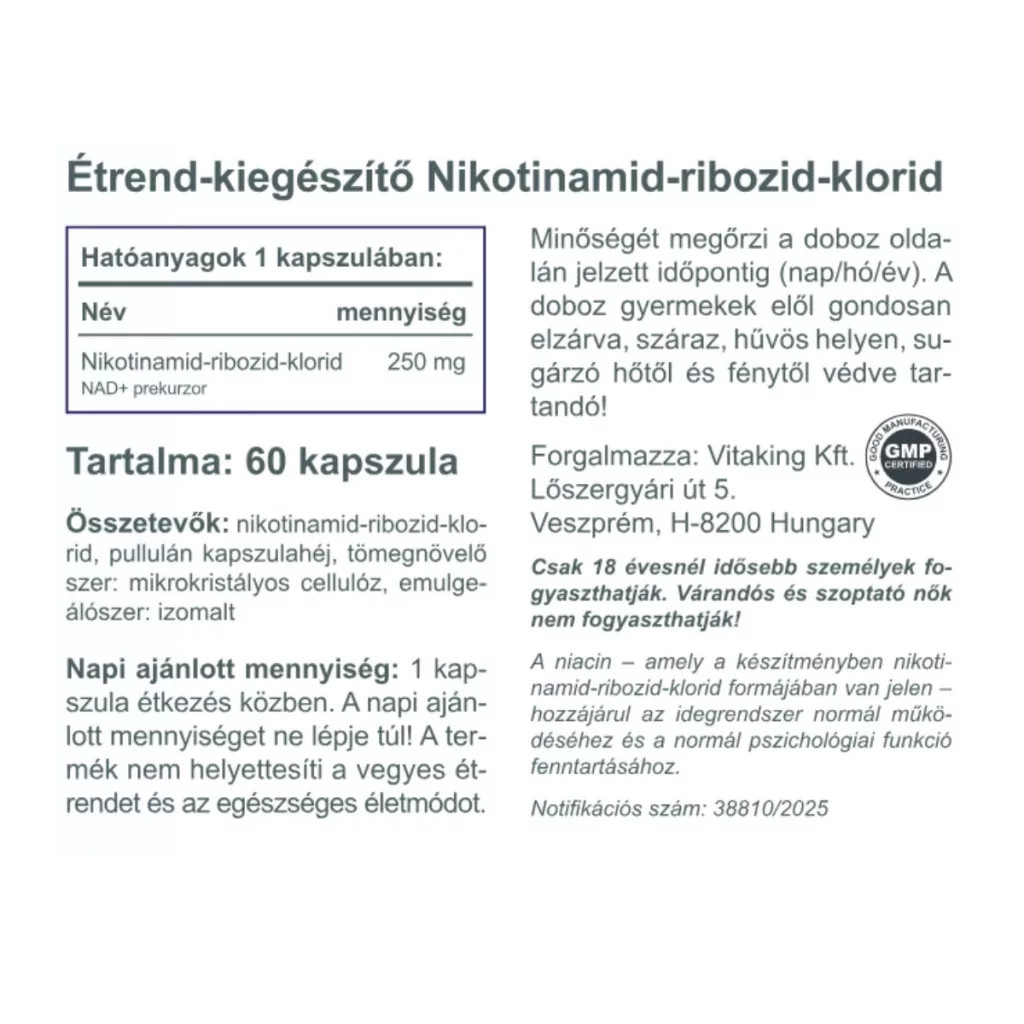 Vitaking NAD+ 250 mg – nikotinamid-ribozid-klorid